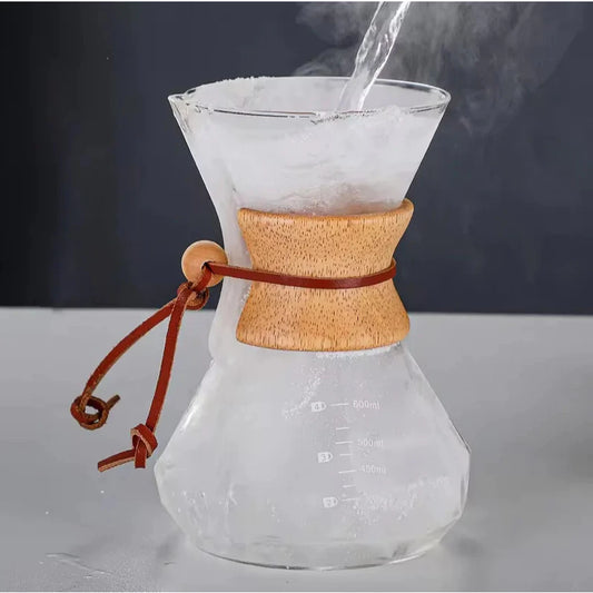 Cafeteira de Vidro Borossilicato 400ml com Detalhe em Madeira – Design Elegante para Café Coado